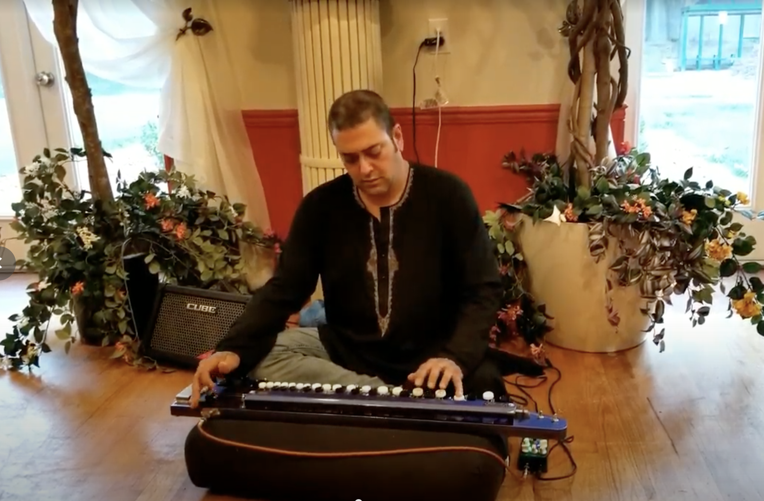 I play a classical stringed Indian instrument called a Shahi Baaja. I like to play it live in vinyasa classes.